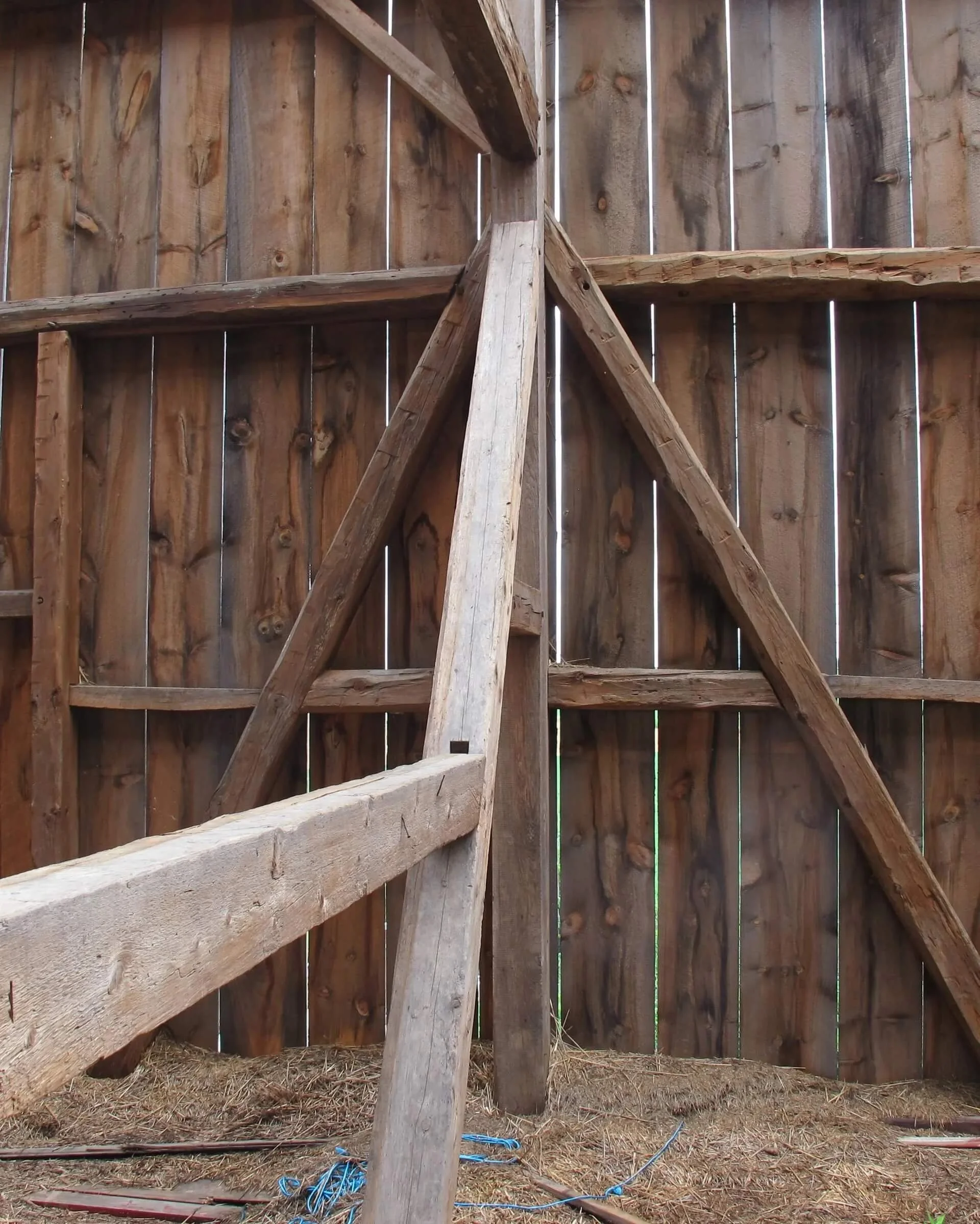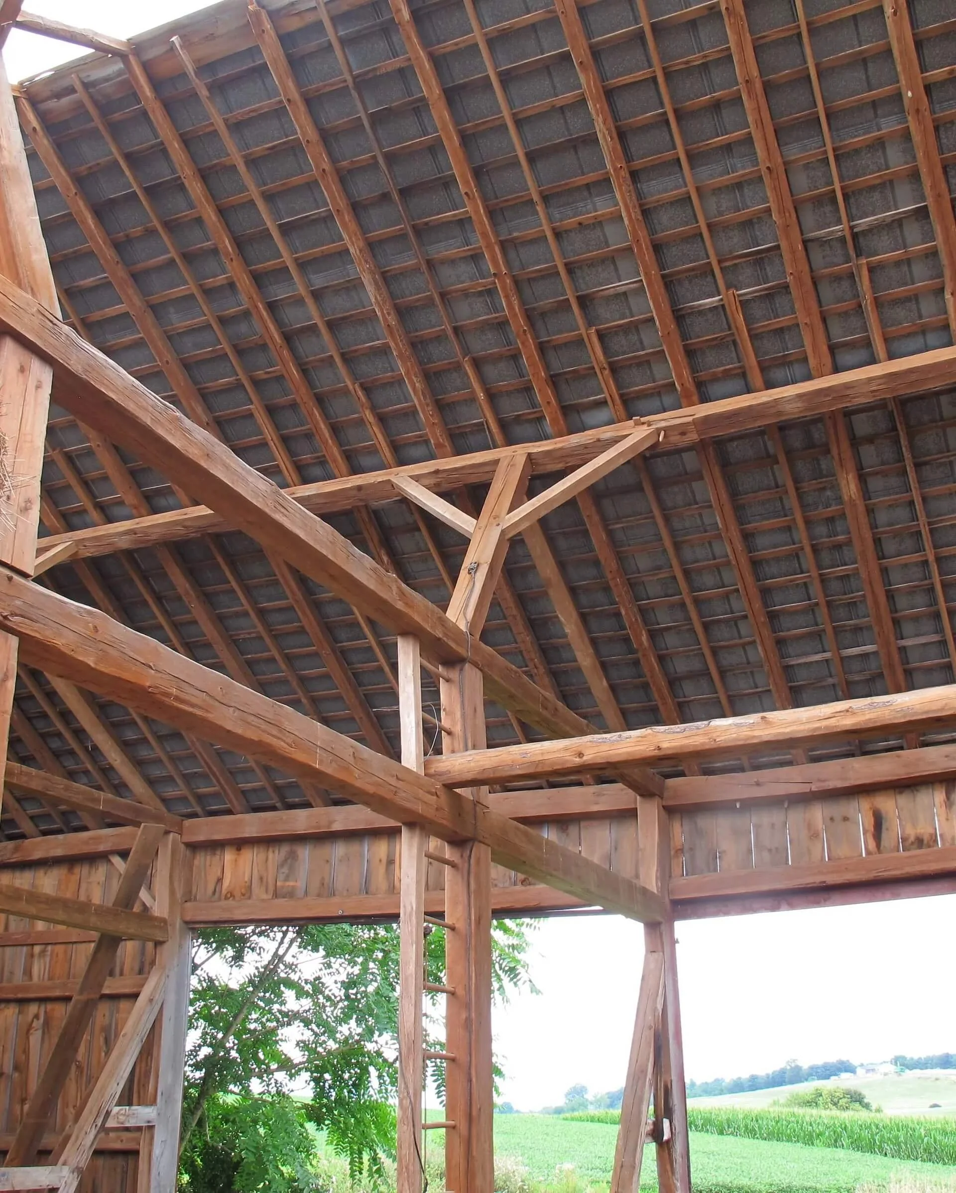 Crafted with meticulous attention to detail, the barn showcases the skill and artistry of its builders. The hand-hewn timbers, arranged in a sixteen, sixteen, seventeen, and nineteen-foot bay and bent spacing pattern, form a robust and visually striking frame. The barn's one-story layout, with the potential for a loft, offers flexibility for home or event space reconstruction,
